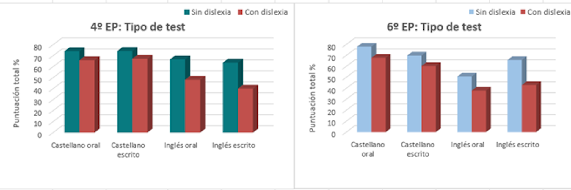 En nuestro estudio, también hemos encontrado diferencias significativas entre lectores típicos y disléxicos en programas bilingües, con resultados notablemente inferiores en inglés en comparación con el castellano. Estos hallazgos sugieren que la población disléxica se enfrenta a barreras adicionales en un entorno bilingüe.