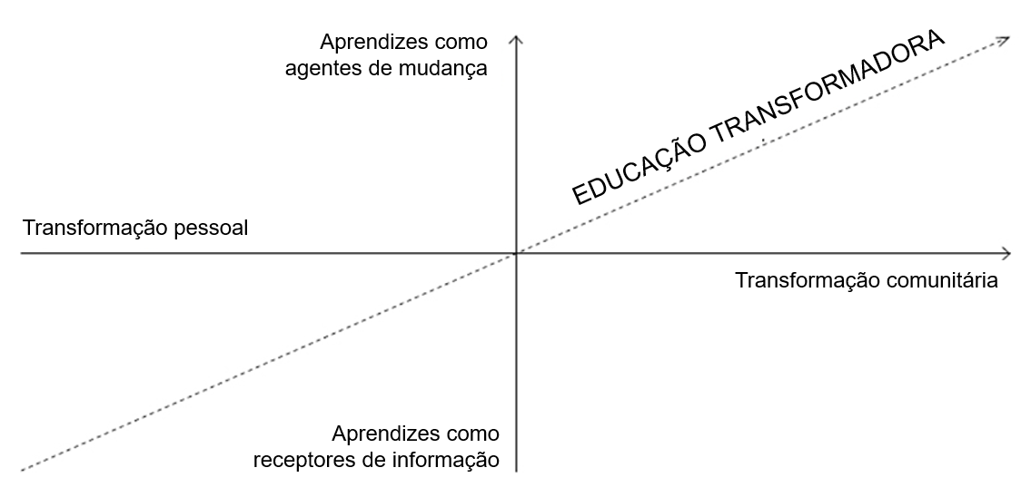 Sim, toda educação é transformadora por si só, na medida em que gera mudanças nas pessoas que ensinam e nas pessoas que aprendem (transformação pessoal). No entanto, queremos destacar o caráter intencional da transformação que vai além da pessoa. Uma Educação Transformadora é definida pela busca de transformações locais protagonizadas pelos nossos grupos de aprendizes. Por isso, para crescer em termos de Educação Transformadora, precisamos que haja, pelo menos, uma transformação pessoal daqueles que estão aprendendo (como em todo processo educacional), mas também, mesmo que em pequena escala, uma transformação comunitária (como em todo processo de impacto social).