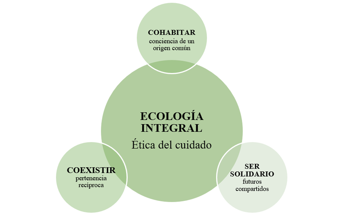 A ecologia integral evoca a consciência e a responsabilidade de cada pessoa que habita o planeta: consciência de suas possibilidades e responsabilidades pelo cuidado pessoal e coletivo, pois a casa é de todos e todas. Essa motivação fortalece o compromisso por uma educação integral pautada nos princípios do humanismo solidário (diálogo, esperança, inclusão e cooperação), nos valores da cidadania global (respeito, pertencimento e responsabilidade) e nas competências socioemocionais (harmonia entre o sentir, o pensar e o agir).